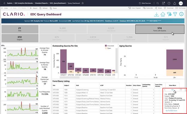 button to display additional detail and a link to the EDC system (when